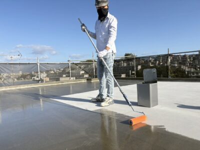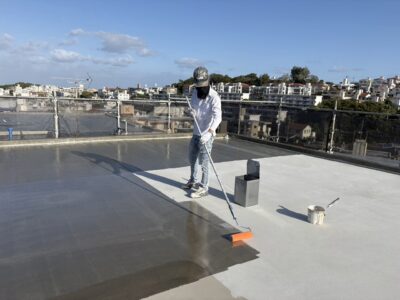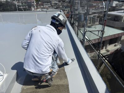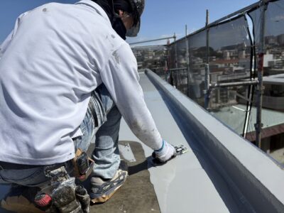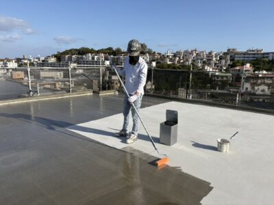 屋上、プライマー塗布
