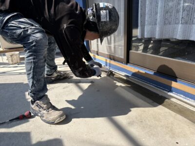 ベランダ、立上がりプライマー塗布