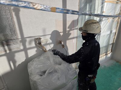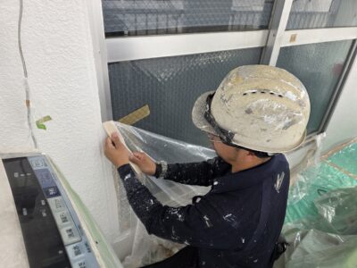 外壁、下地調整材だめこみ