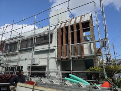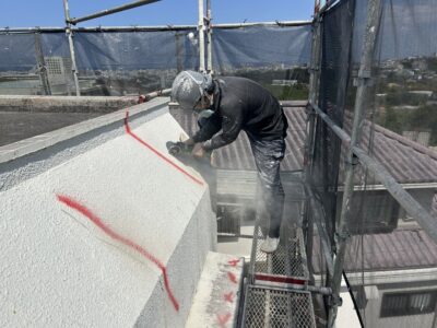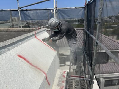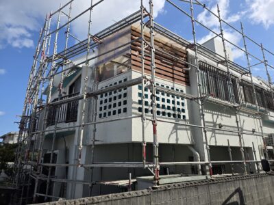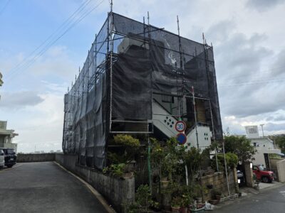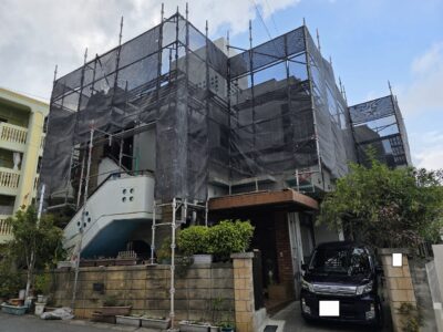 浦添市沢岻 I様 外壁塗装・防水工事着工しました。