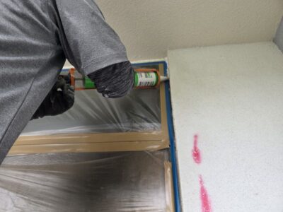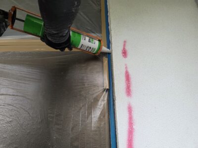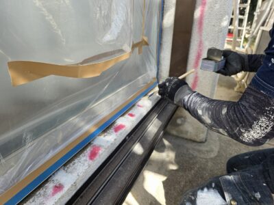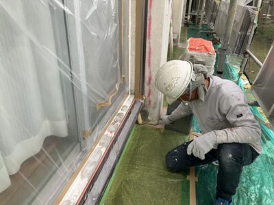 サッシ廻り、シール打替え プライマー塗布