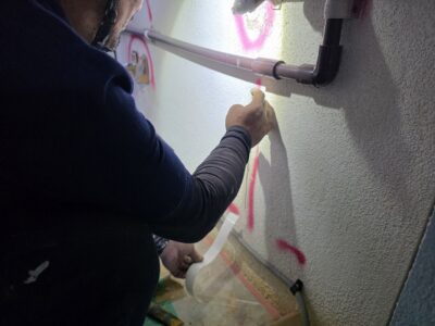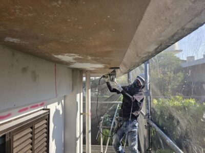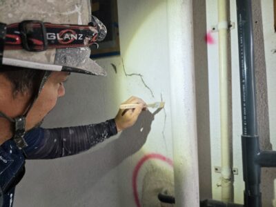 ひび割れ補修 プライマー塗布・メッシュ補強