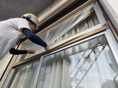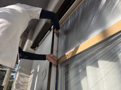 サッシ廻り、シール剥ぎ取り