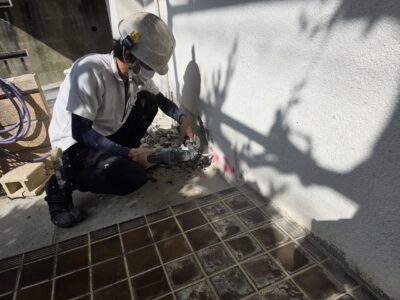 外壁モルタル浮き、斫り