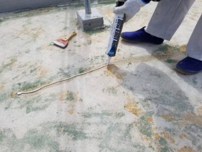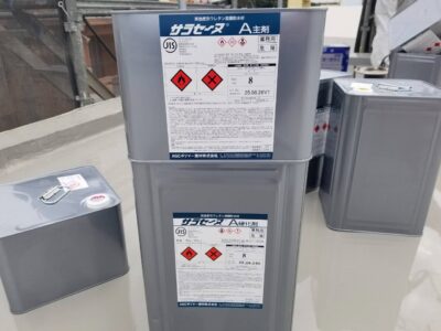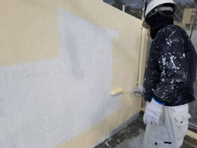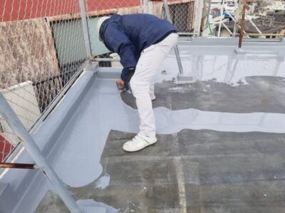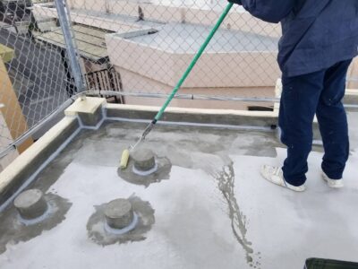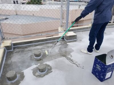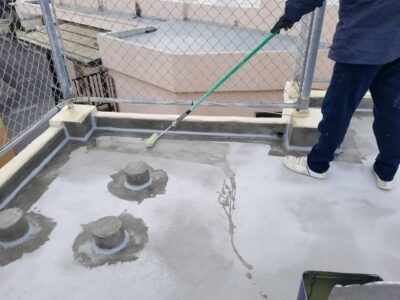 高伸長形ウレタン防水「サラセーヌK」1層目塗布