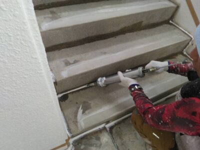 引き続き、モルタル浮き部エポキシ注入固定