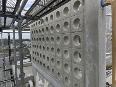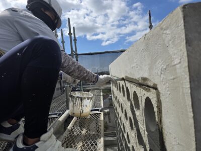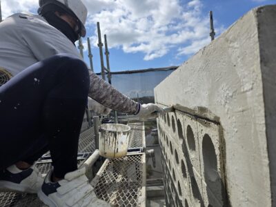 痛んだマスブロック、カチオンセメントペーストにて下地調整
