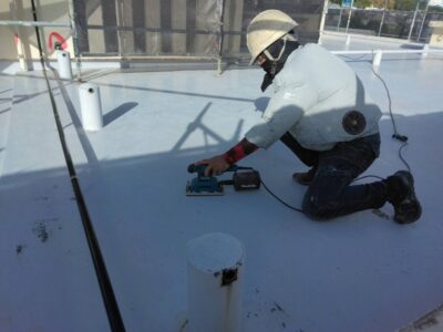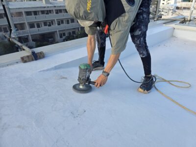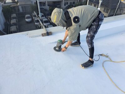 屋上、トップ塗り替え。目粗し