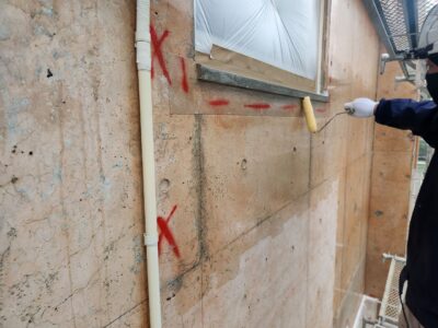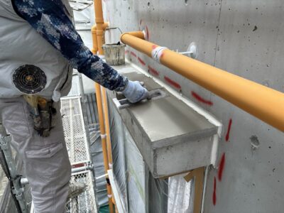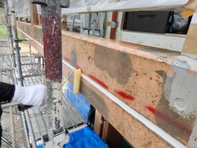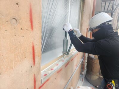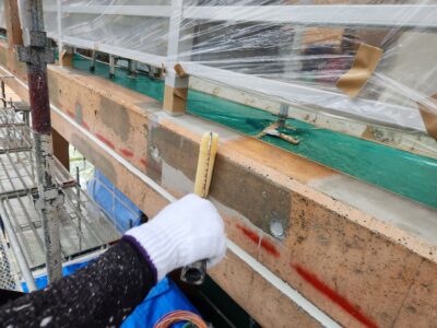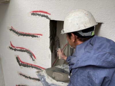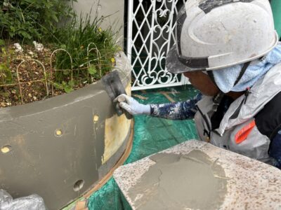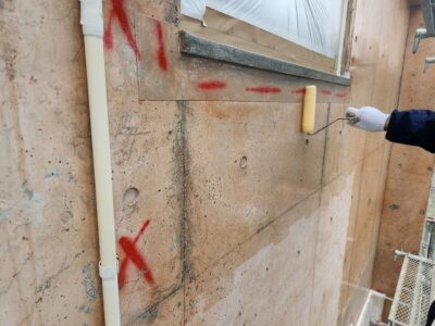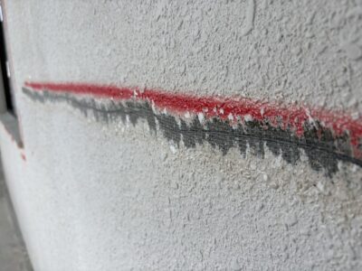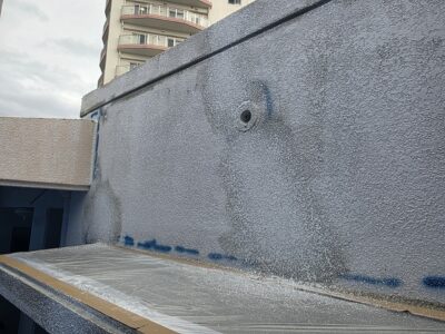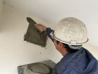 モルタル浮き、高強度ポリマーセメントモルタル中塗り