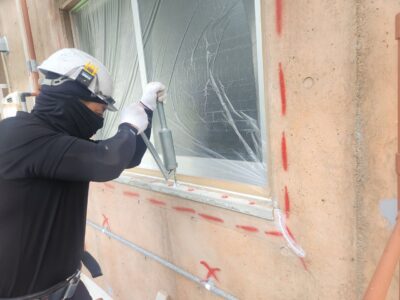 高耐候性弾性パテ「オートンアドハー3500」充填