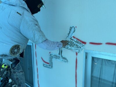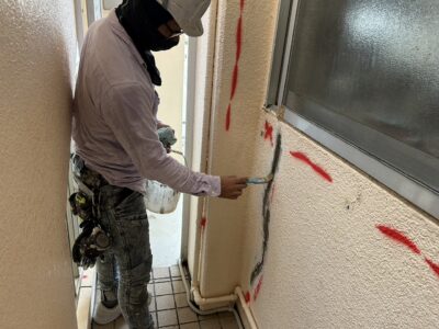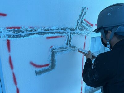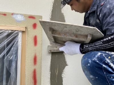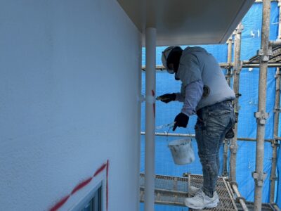 外壁、水系1液無機有機ハイブリッド塗料 上塗1回目塗布
