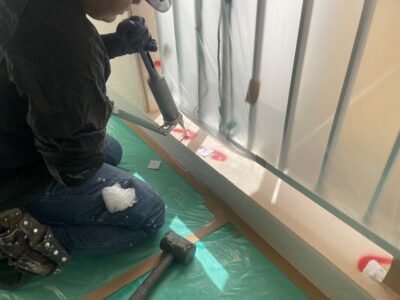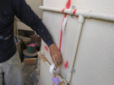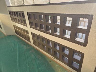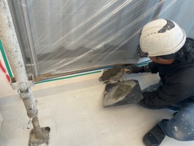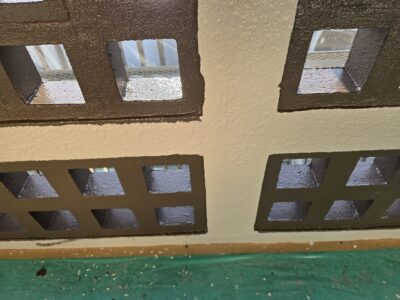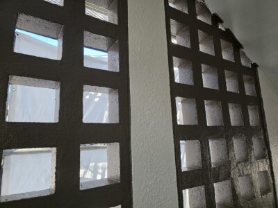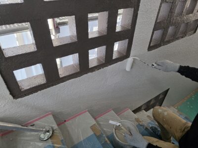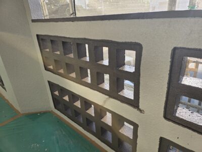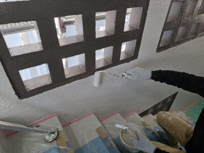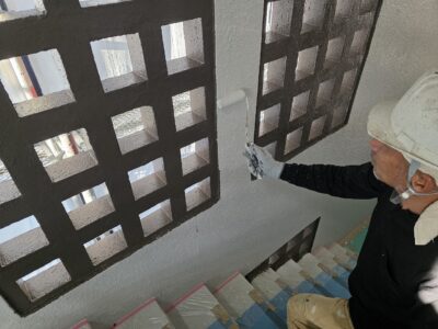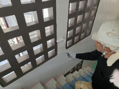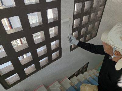 マスブロック 上塗2回完了 見切り塗装上塗1回目