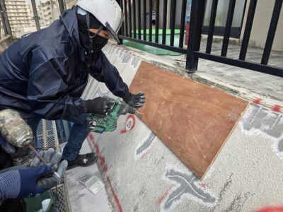 ひび割れカット・周囲削り後