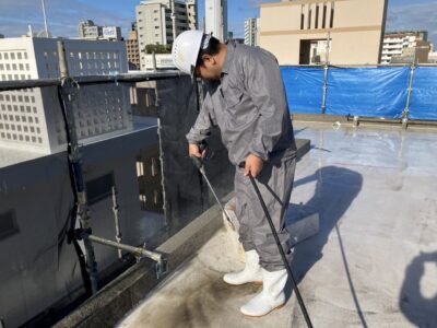 「セミフロンスーパールーフⅡ遮熱」上塗1回目塗布