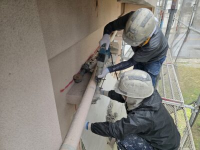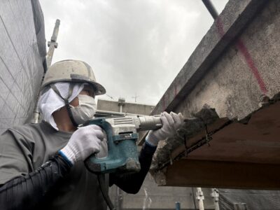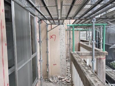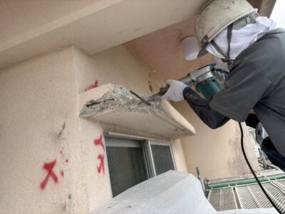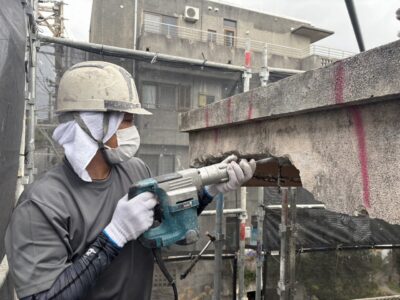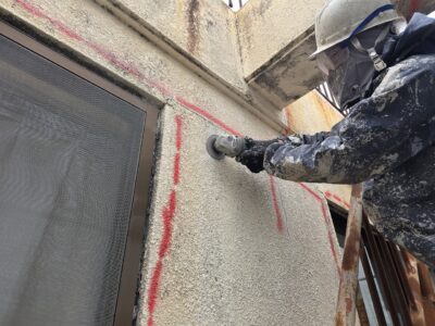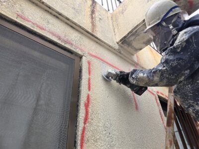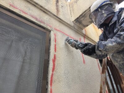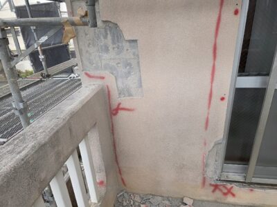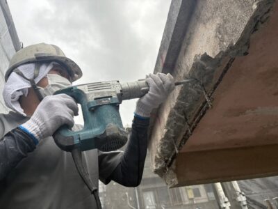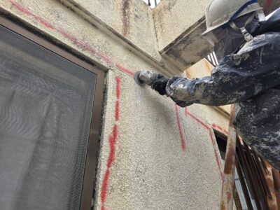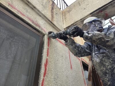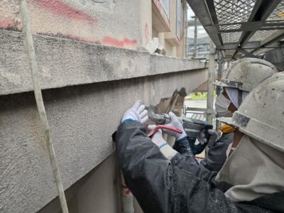 外壁3面先行 爆裂・モルタル浮き斫り