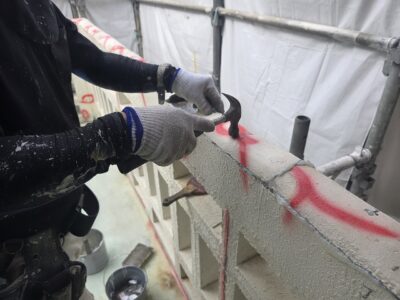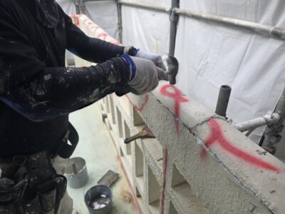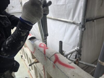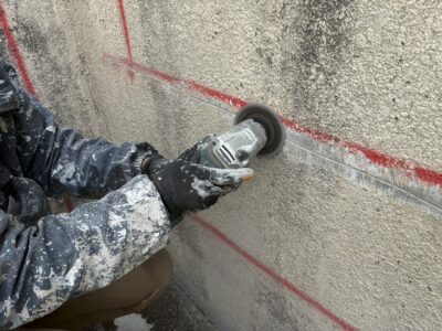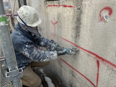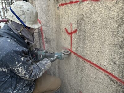 引き続き、ひび割れカット・周囲削り