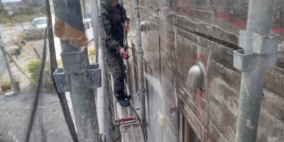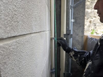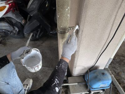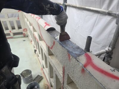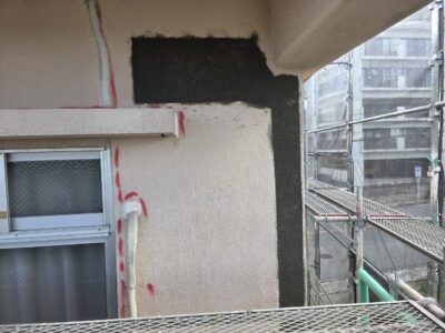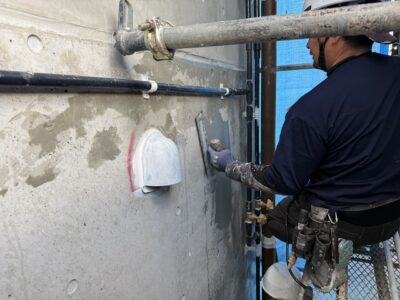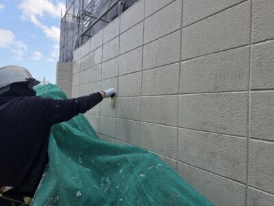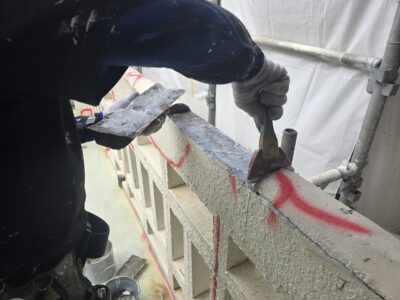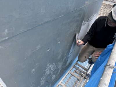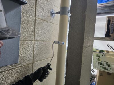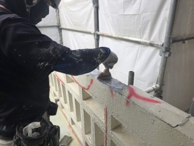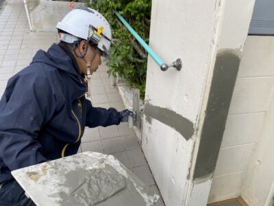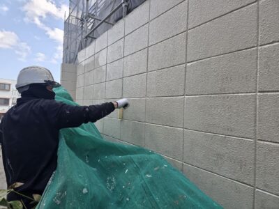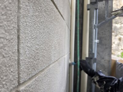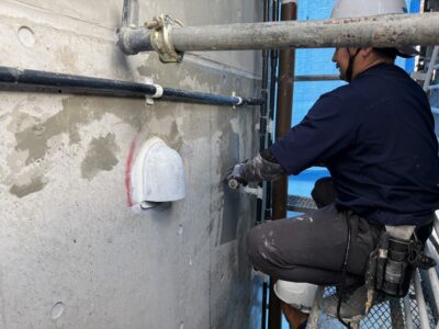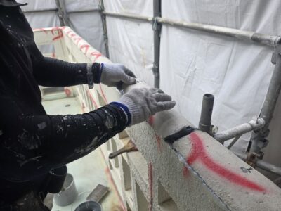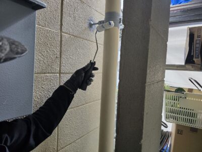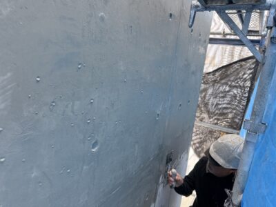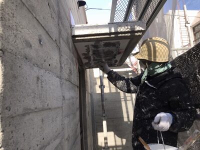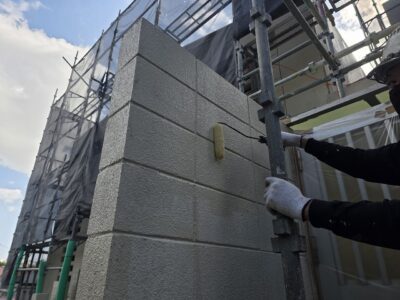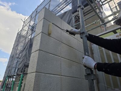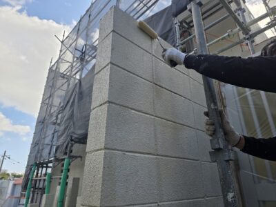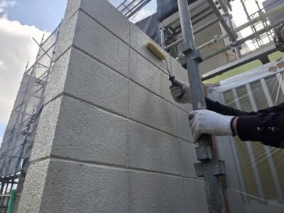 引き続き、外壁、カチオンポリマーセメント下地調整