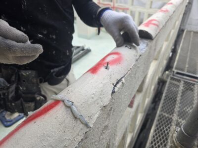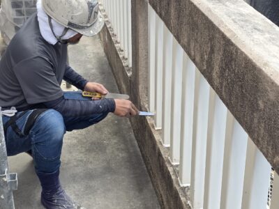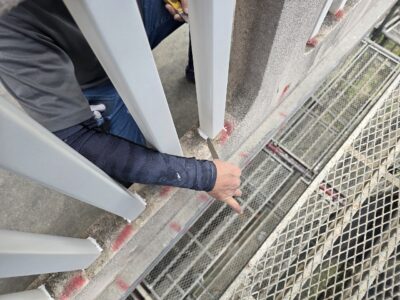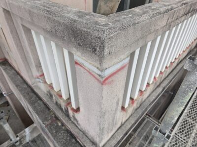 手摺り天端モルタル浮き、エポキシ固定