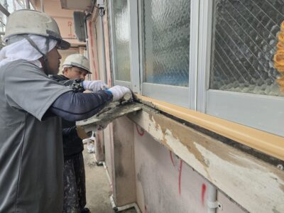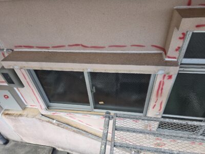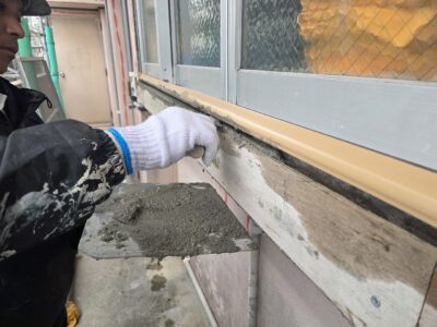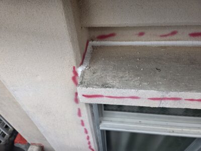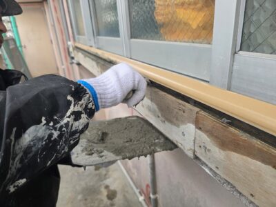 サッシ廻り、モルタル浮き補修