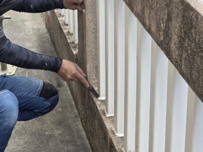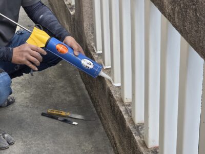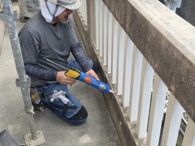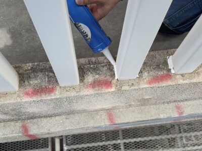手摺り根元、シール処理