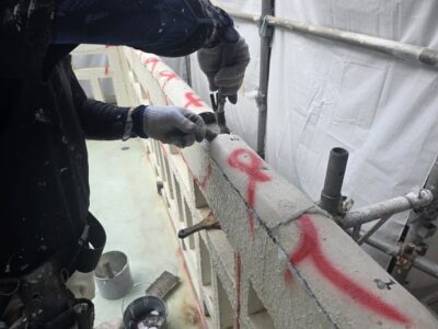 目地内、カチオンセメントペースト下地調整