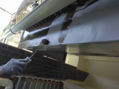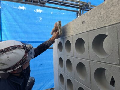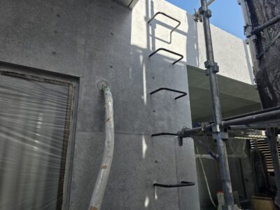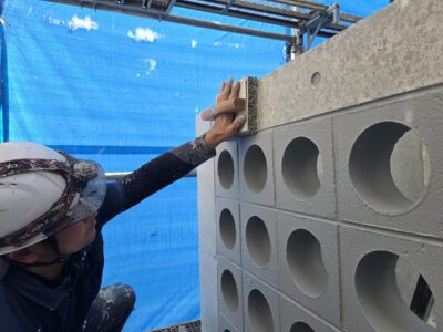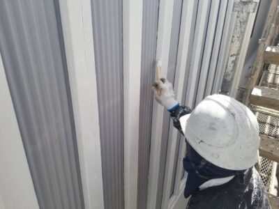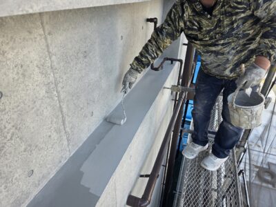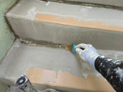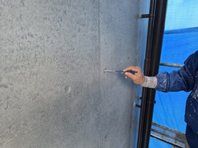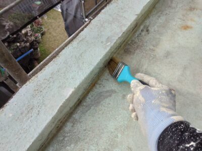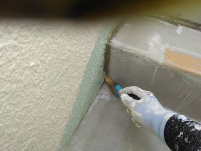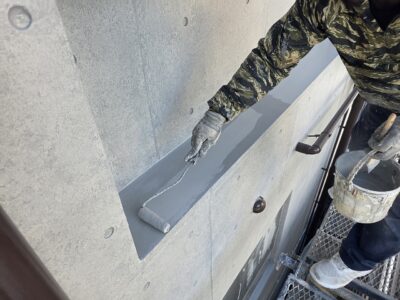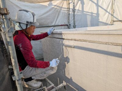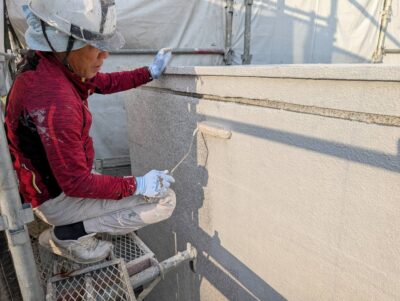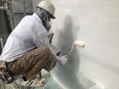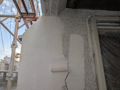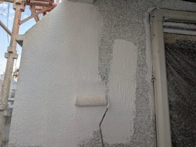 外壁模様吹付け後、下塗2回目 下地調整材塗布